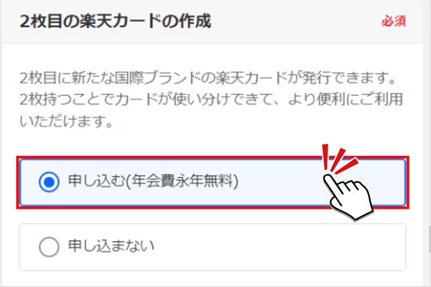カードお申し込み時に「申し込む」を選択