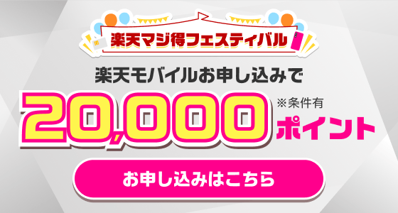 こちらのキャンペーンは楽天モバイル株式会社主催になります。楽天モバイルの進呈条件について詳しく見る