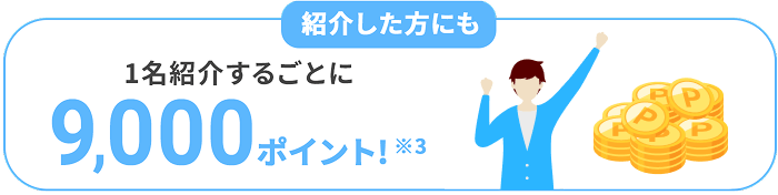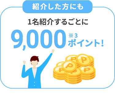 紹介キャンペーン紹介した方に9,000ポイント、紹介された方に1,000ポイントキャンペーン期間は2026年3月19日(木)10:00~2026年4月6日(月)10:00となります。