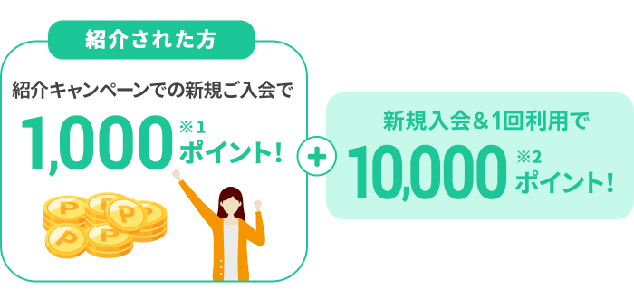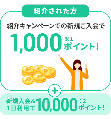 - 紹介された方への1,000ポイントについて、特典は期間限定ポイントで進呈いたします。 詳細を見る