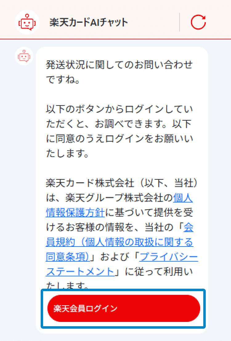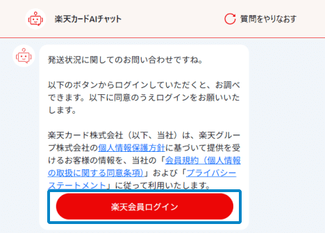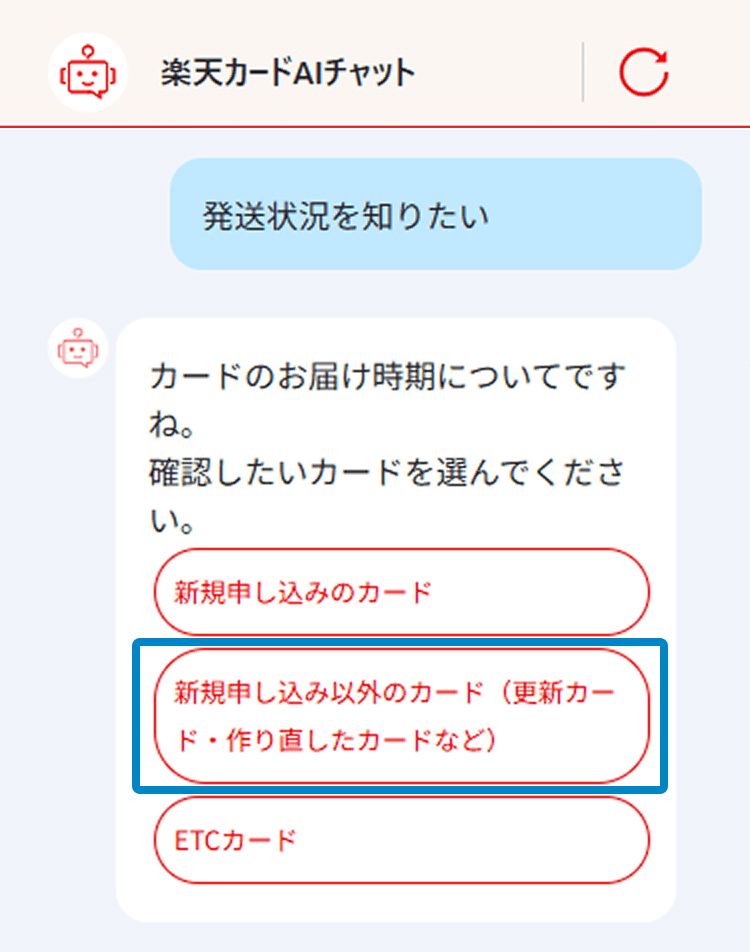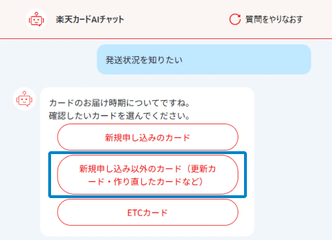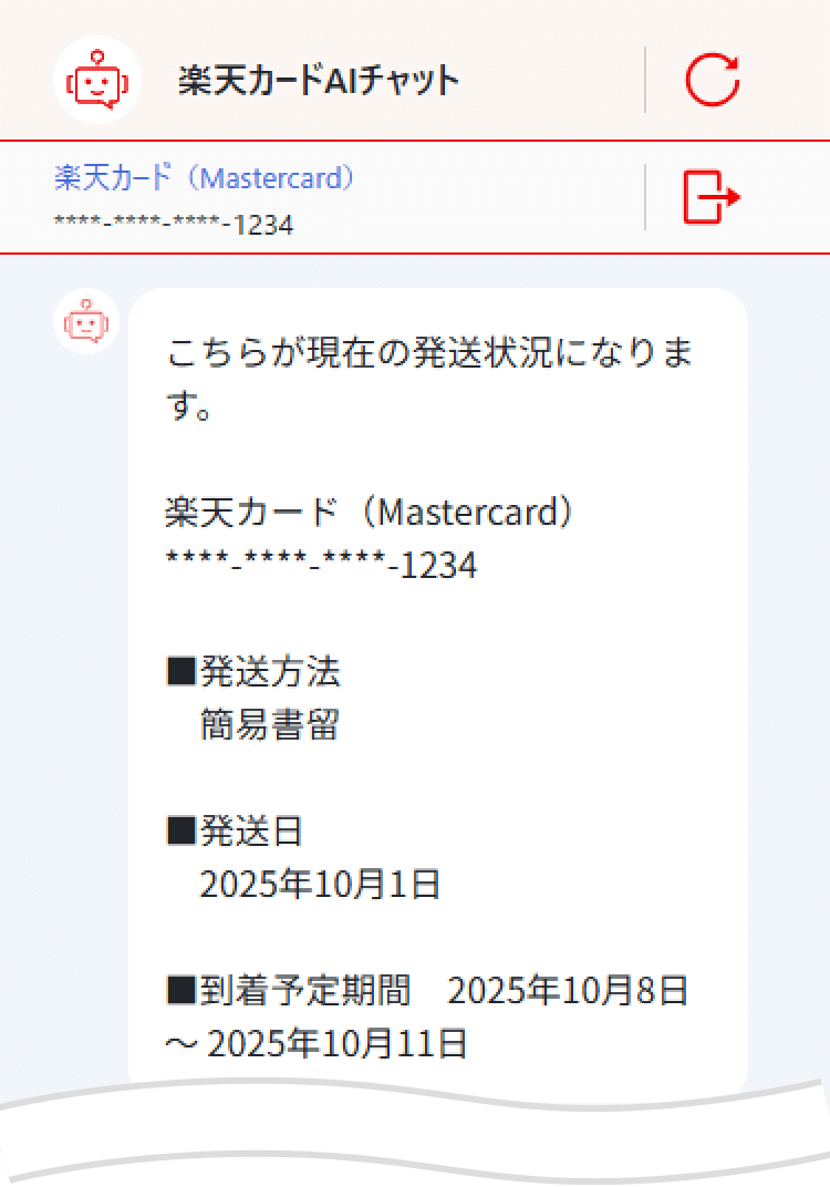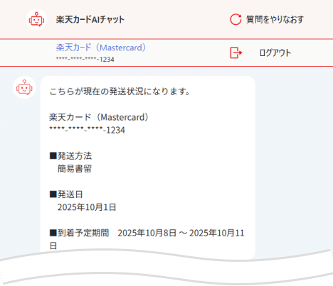 チャット内でカードの発送状況をご照会いただけます。